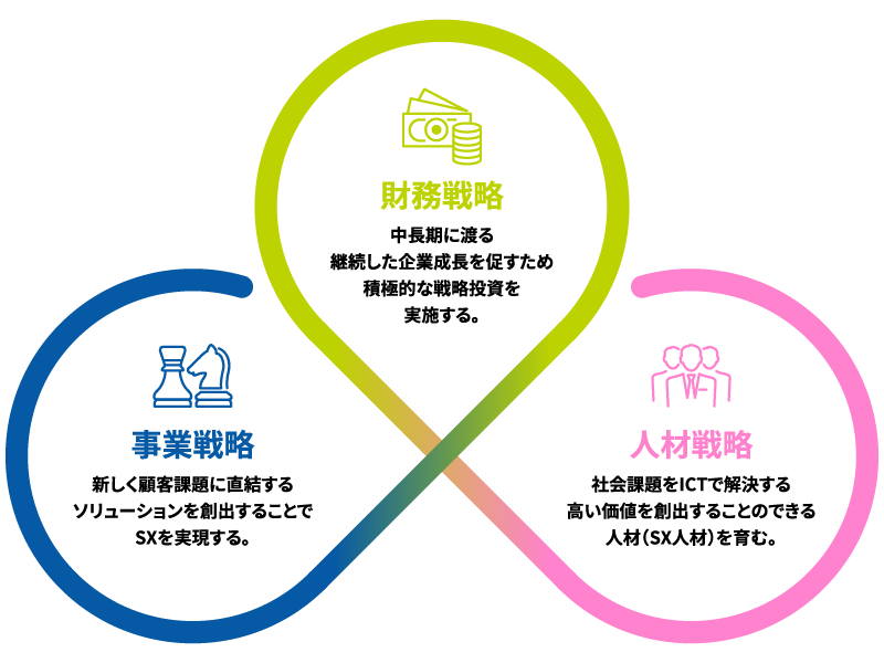 ICTを用いた社会課題の解決を通じて持続的成長を目指す。