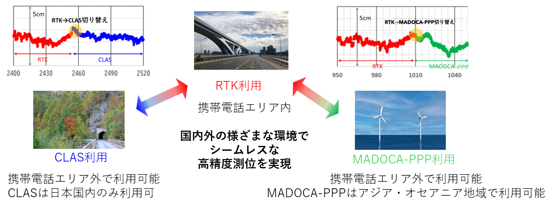 ※「RTK⇔MADOCA-PPP」、「RTK⇔CLAS」の自動切替機能は特許取得しております。