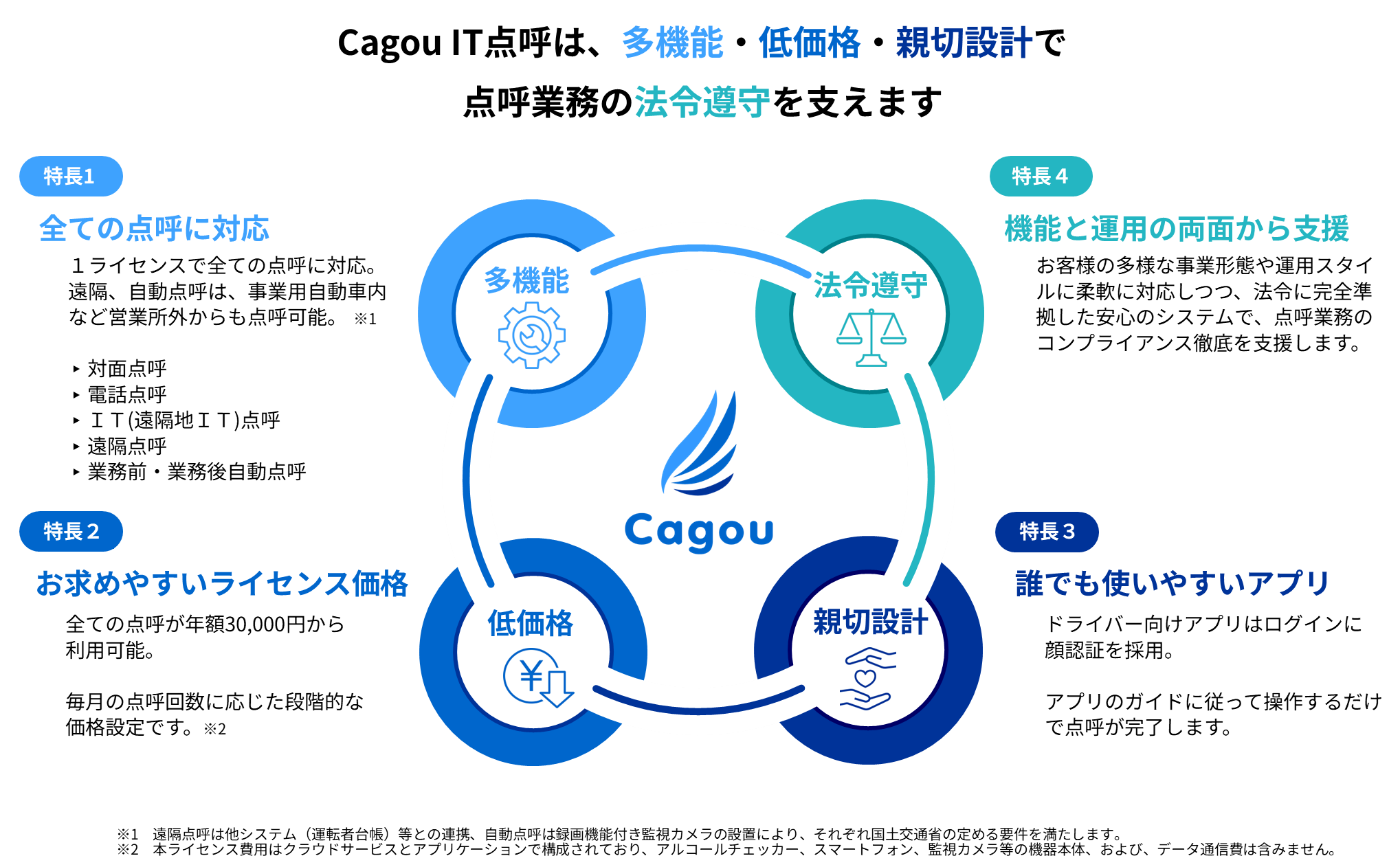 | Cagou IT点呼 | A社 | B社 | C社 | |